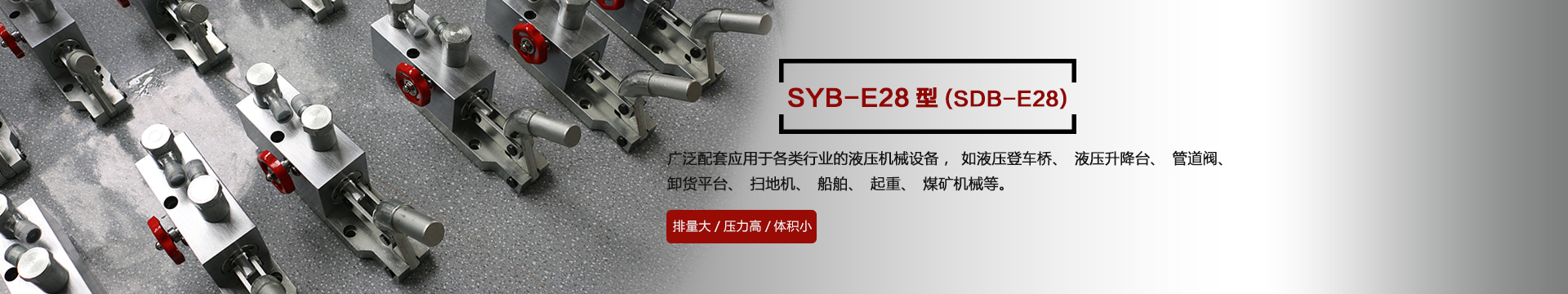 本產(chǎn)品SYB-E28型在本公司原有的SDB-E28型基礎(chǔ)上不斷改進(jìn)改良,廣泛應(yīng)用于各種行業(yè)的機(jī)械設(shè)備,如液壓登車(chē)橋、液壓升降臺(tái)、管道閥、卸貨平臺(tái)、掃地機(jī)、船舶、起重、煤礦機(jī)械等液壓機(jī)械設(shè)備上,效率高、結(jié)構(gòu)緊湊,深受客戶(hù)的歡迎...